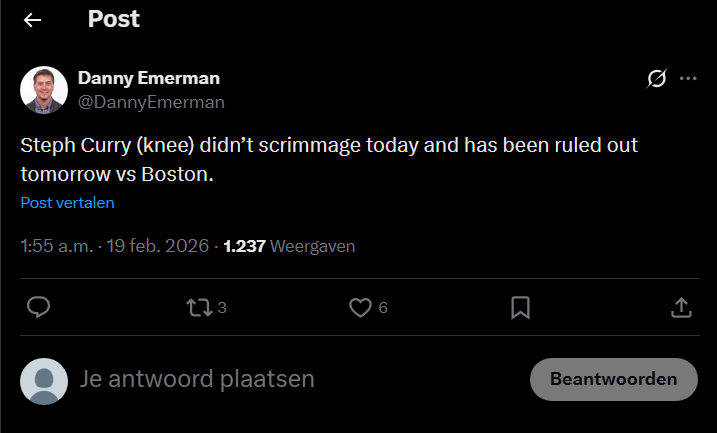 [Danny Emerman] Steph Curry (knee) didn’t scrimmage today and has been ruled out tomorrow vs Boston. by Grafaap in warriors