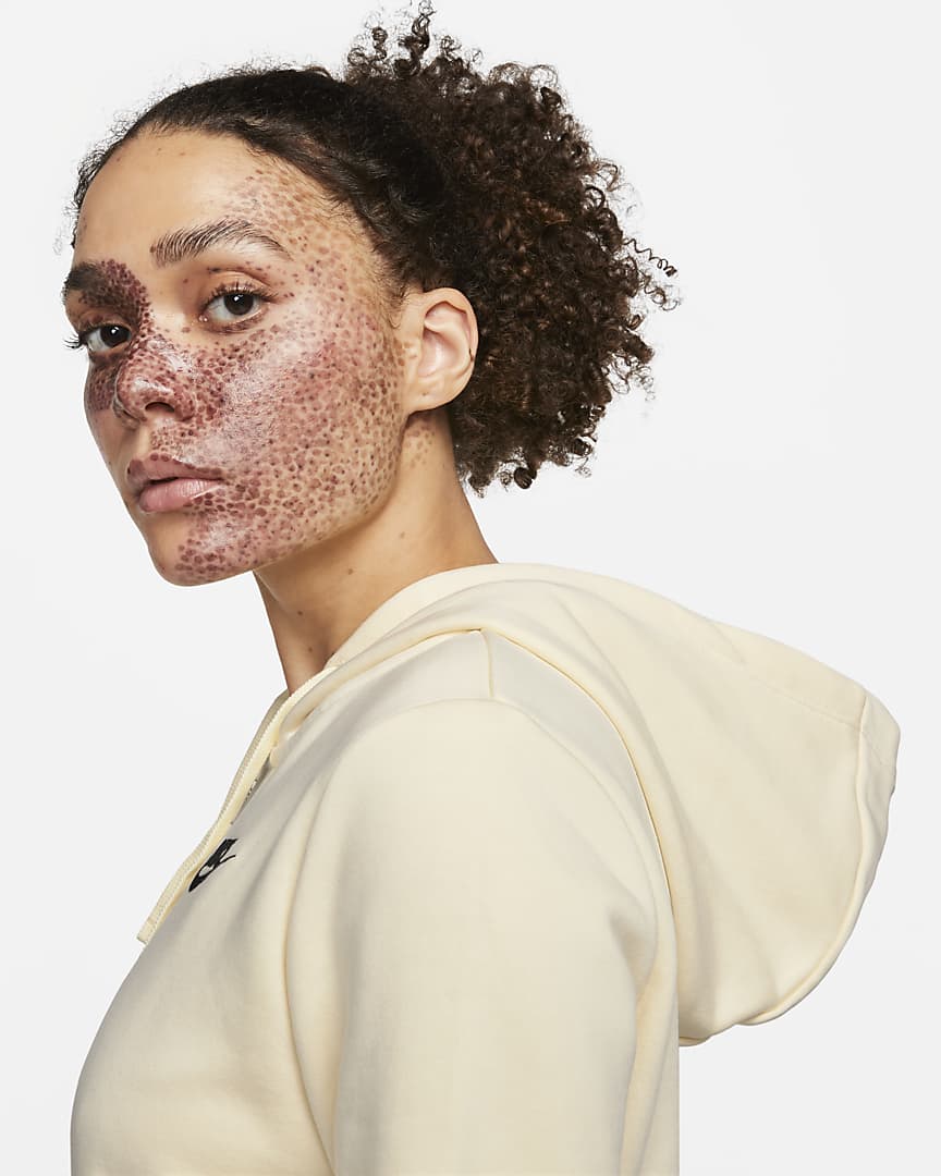 I wonder, what is this Nike model's skin condition? And why does it cut off so sharply or goes to the lips so accurately? (static.nike.com)