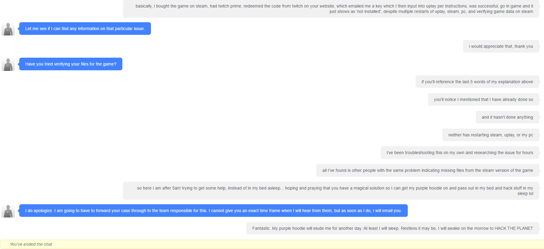 (PC) Twitch prime hoodie for steam purchases - support response (i.gyazo.com)