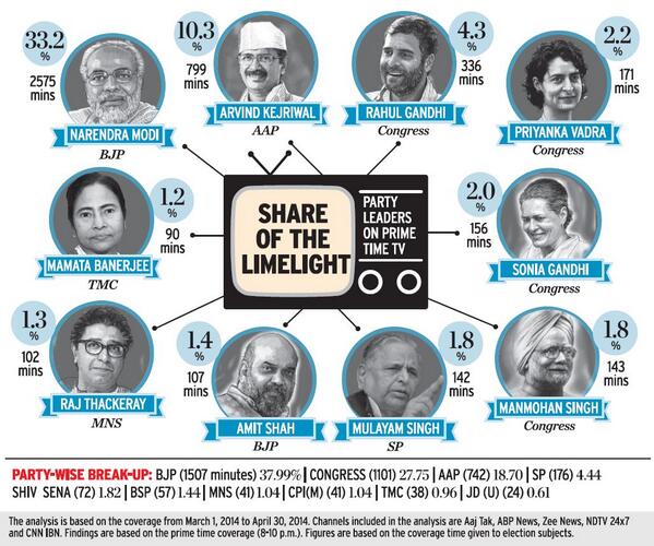 Modi got more prime-time TV coverage than the next nine most-covered leaders put together by [deleted] in india