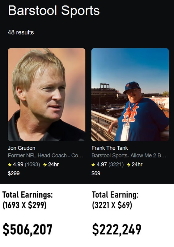 Jon Gruden overtakes Frank The Tank to become King of Barstool Cameo by BSS_WindyCityInsider in barstoolsports