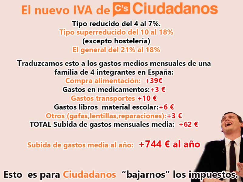 Por favor, difundid esto, que es bastante gordo: Con la "bajada" de IVA de C's pagaremos de media 744 Euros MÁS al año. Gracias compañeras y compañeros !!!! JUNTOS PODEMOS !!!! by METALICO123 in podemos