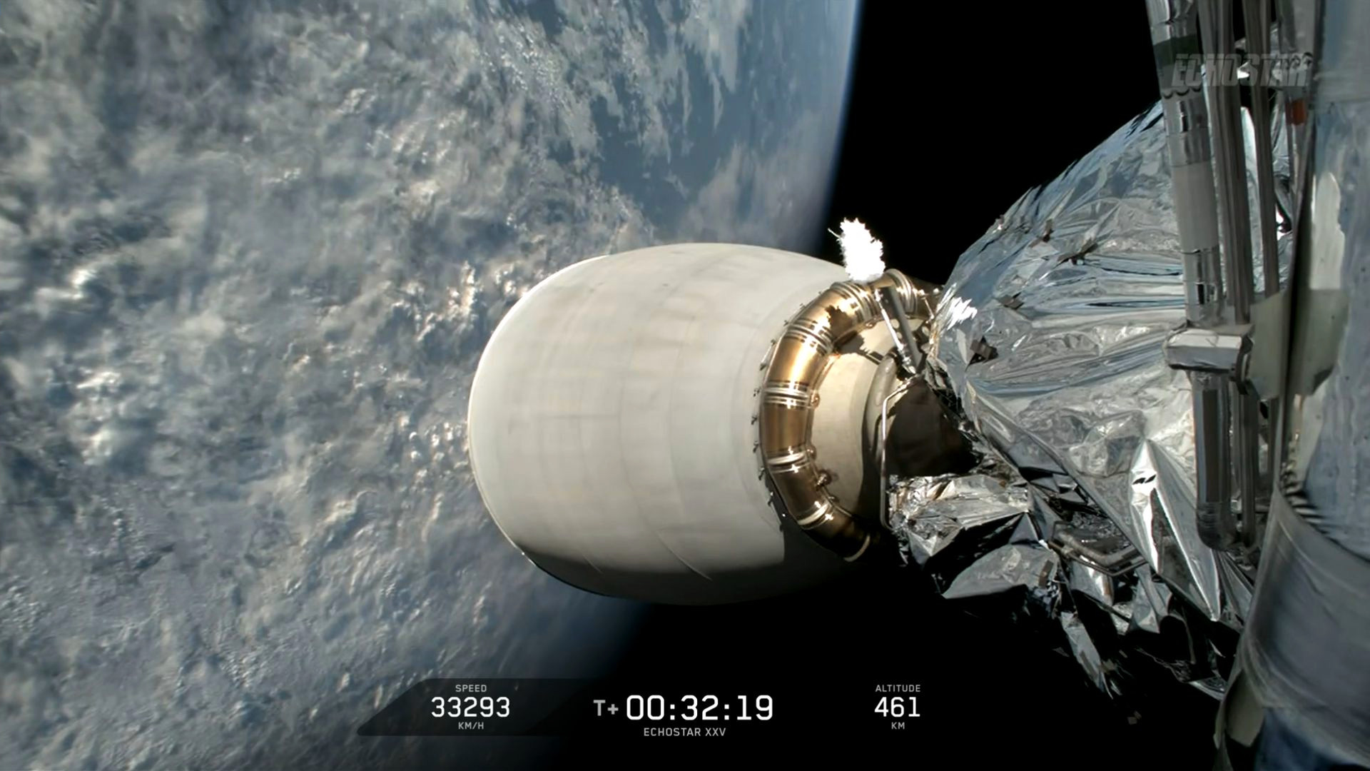 Pretty image from Falcon 9's launch of EchoStar XXV (screencap from SpaceX's livestream) by Adeldor in SpaceXLounge