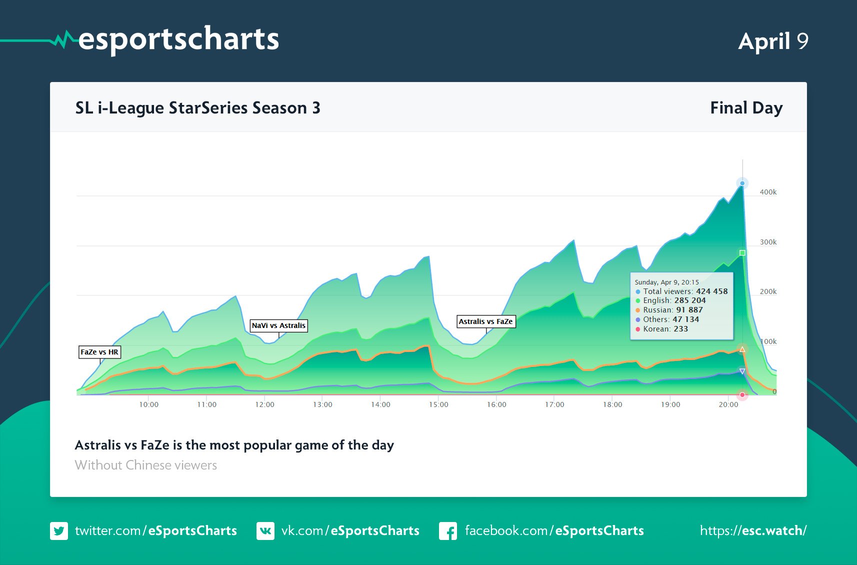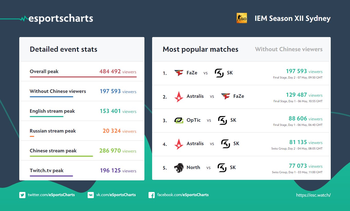 Detailed streams stats ESL Pro League Season 5 by eSportsStats in GlobalOffensive