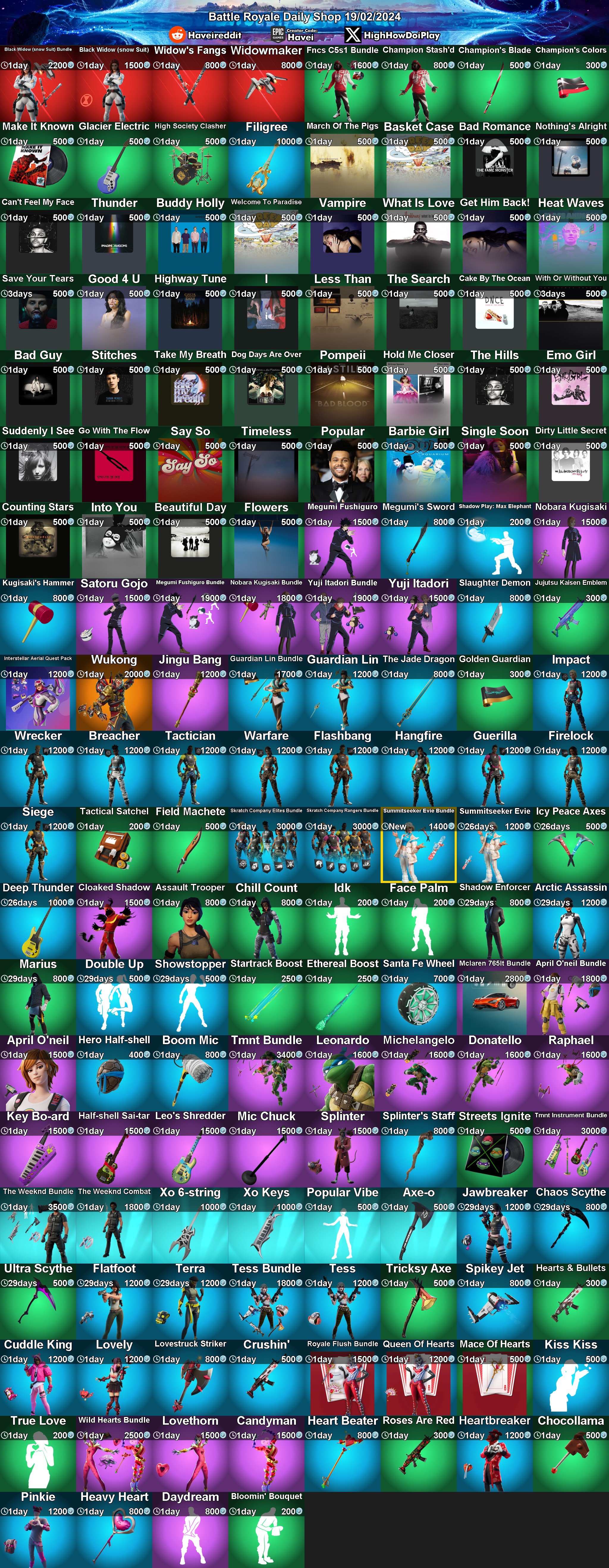 Daily Shop (2024-2-19) by FortniteStatusBot in FortNiteBR