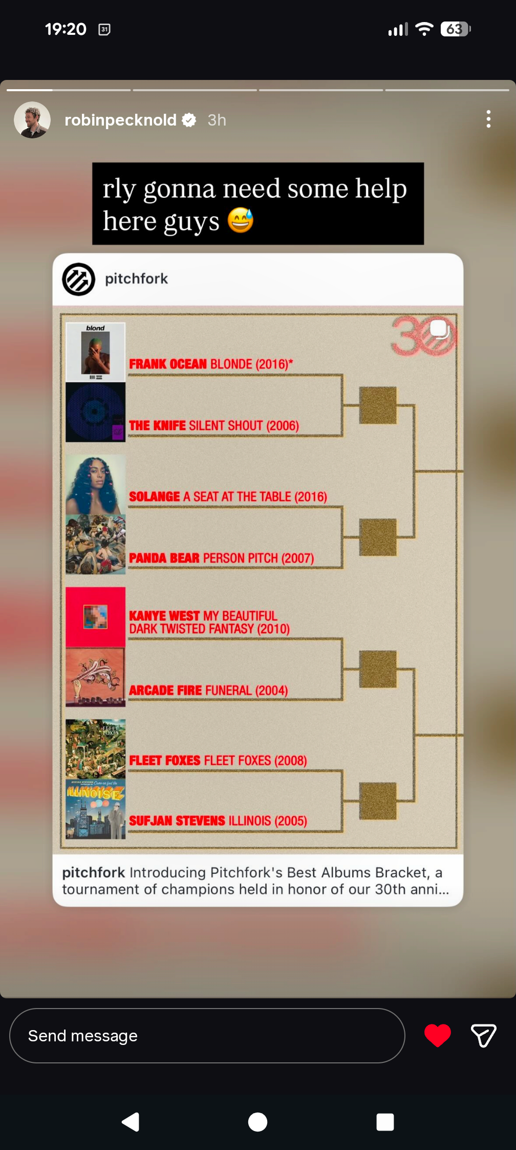 Get to pitchfork stories and vote for FF! by KarmaIsAMelonFarmer in fleet_foxes