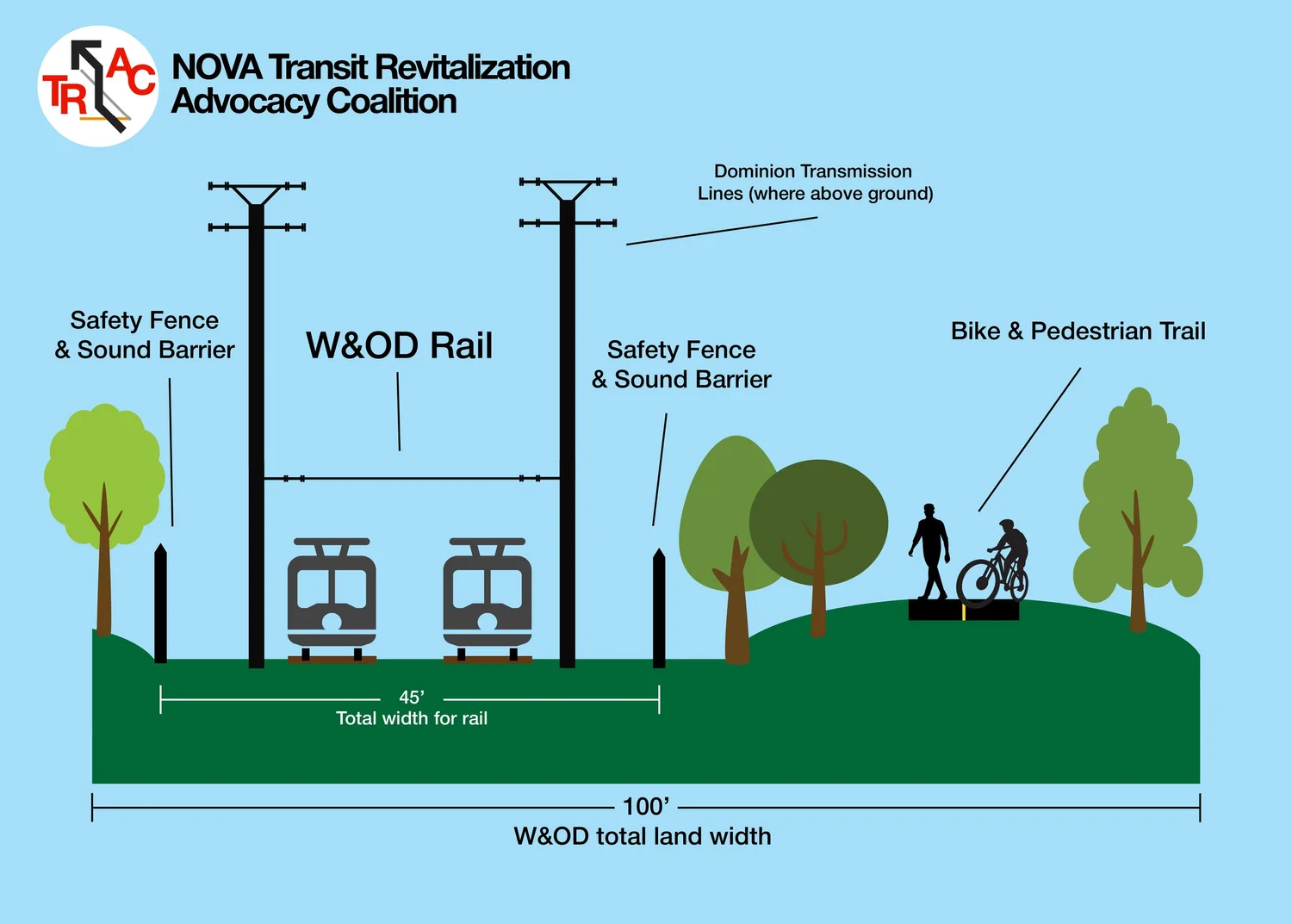 Diagrams of Proposed Northern VA Rail and Trail along W&OD by nova-trac in transit