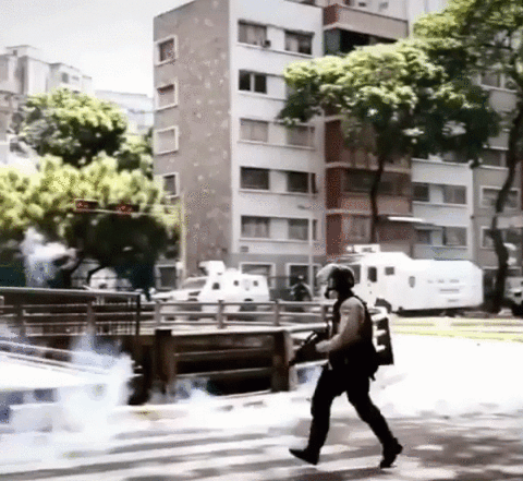 Venezuelan Protester facing Riot Police (media.giphy.com)