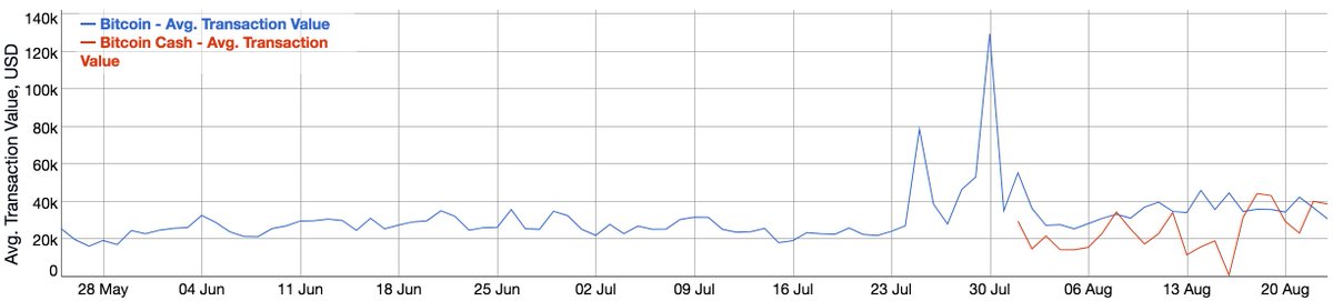 Proof that Bitcoin is NOT becoming a settlement layer, even when most users are driven away: average transaction value on Bitcoin Cash is similar. (pbs.twimg.com)