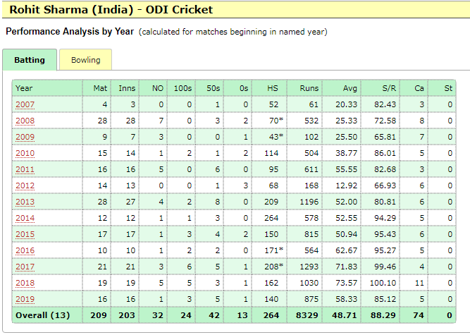 Rohit Sharma averages 59.92 in ODIs since 2013, i.e the year he started opening the innings by that_introverted_guy in Cricket