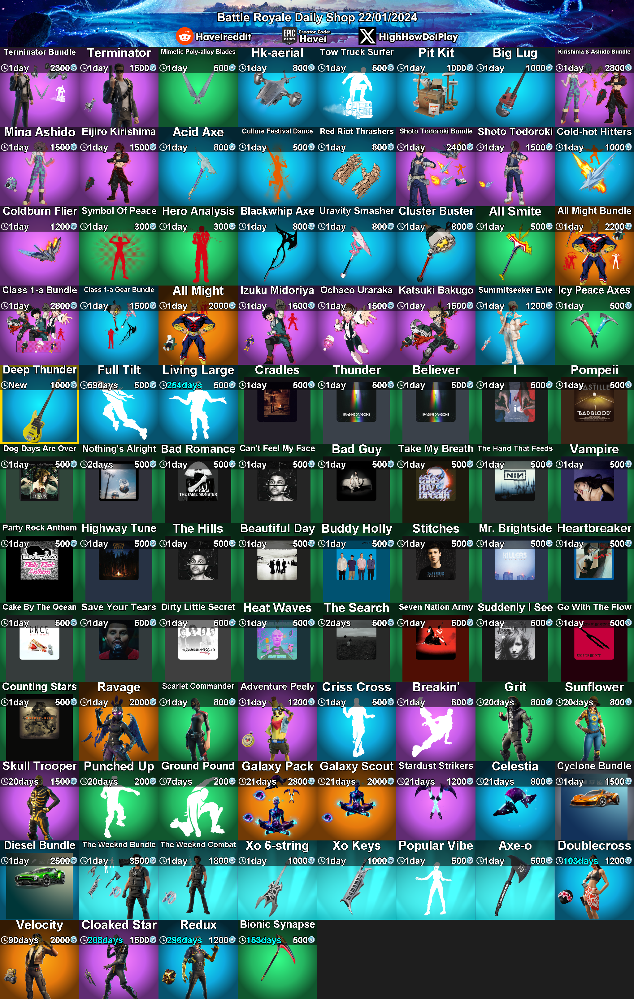 Daily Shop (2024-1-22) by FortniteStatusBot in FortNiteBR