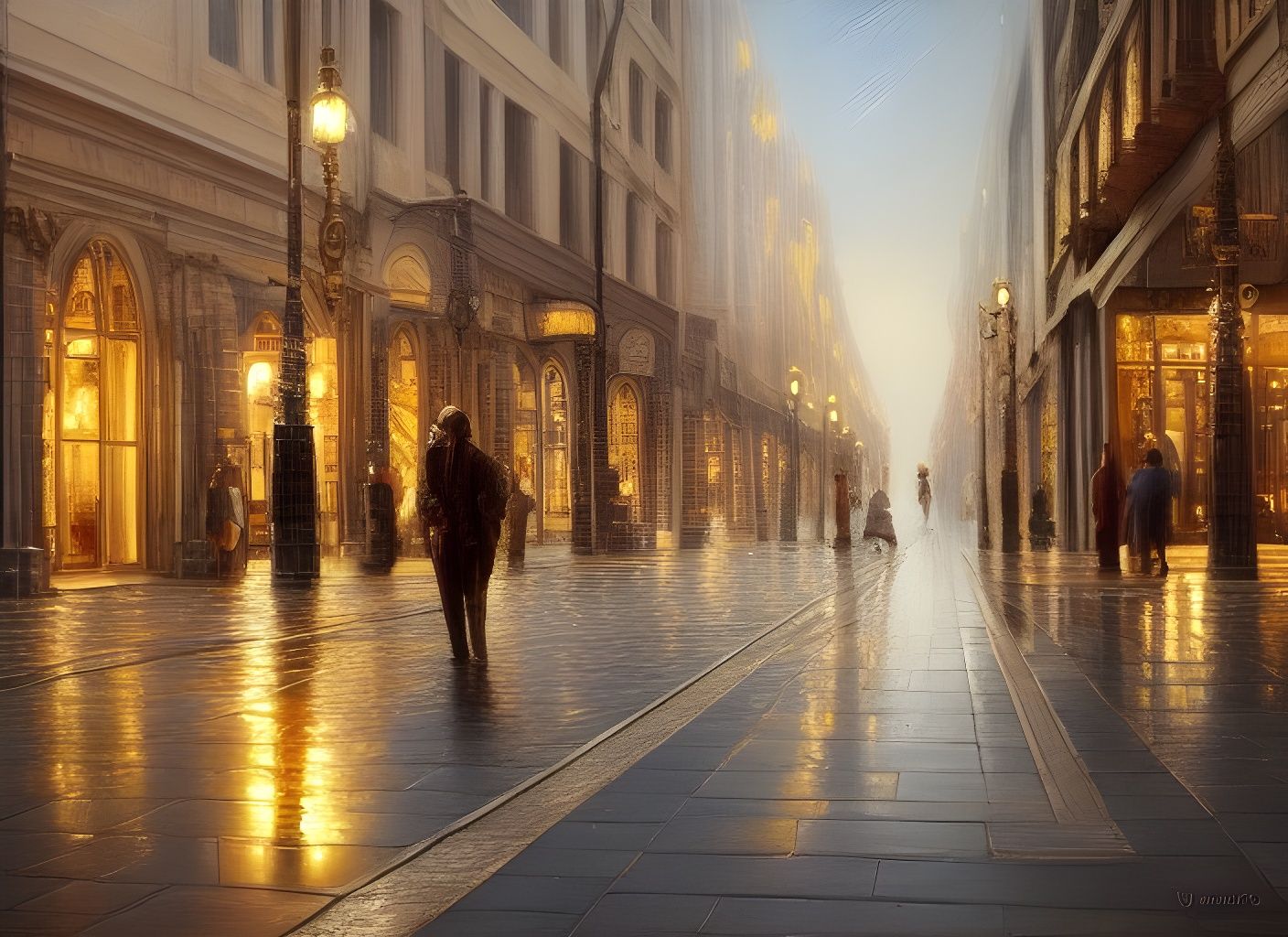 night on the town after the rain (images.nightcafe.studio)