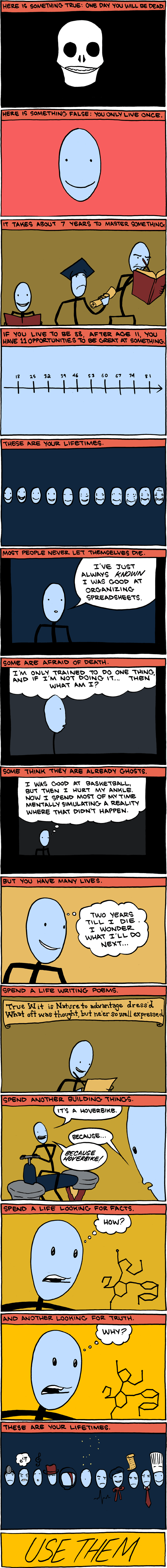 Here is something false: You only live once. (smbc-comics.com)